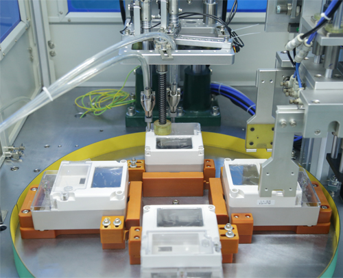 电表外壳锁螺丝可以通过使用在线式自动锁螺丝机