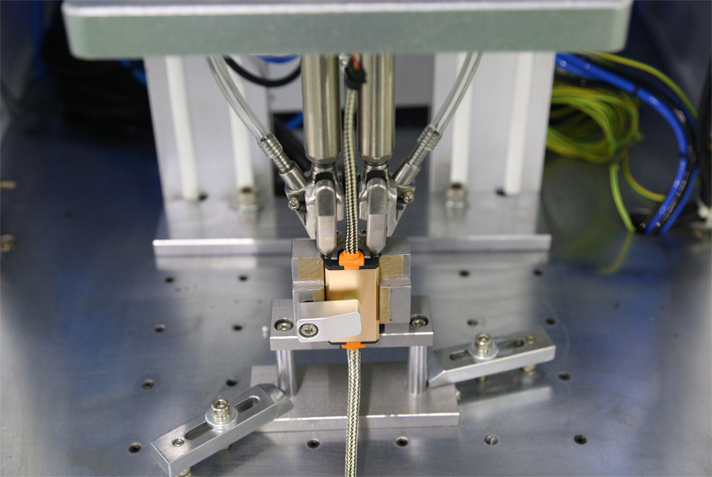 电源线锁螺丝机这一方案选用了多头自动锁附的方式,一次可同时拧紧两颗螺丝。因为需要拧螺丝的产品处于本体的中间部分,所以在设计夹具的时候也把前后两端的位置预留出来,防止影响到产品锁附时因放置不平整而出现锁歪现象。采用了一出二的供料方式,一次输送两颗螺丝到指定位置。速度快不易卡钉。自动锁螺丝机还可以直接放置在生产线旁边,当产品螺丝拧紧作业完成后,直接可放到流水线上,传输到下一个需要作业的工位,生产效率有效提升。