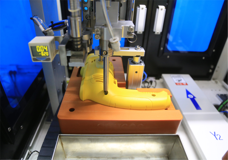 而手电钻自动锁螺丝机则是根据用户的使用要求,定制好相应的设备方案后,由客户进行最终确认后开始采购物料组装。自动锁螺丝机应用于产品上的螺丝拧紧,它可以准确地定位螺孔位置,然后由气管吹送至锁附机构后,进行螺丝拧紧动作。不仅速度快,且锁附效率稳定。