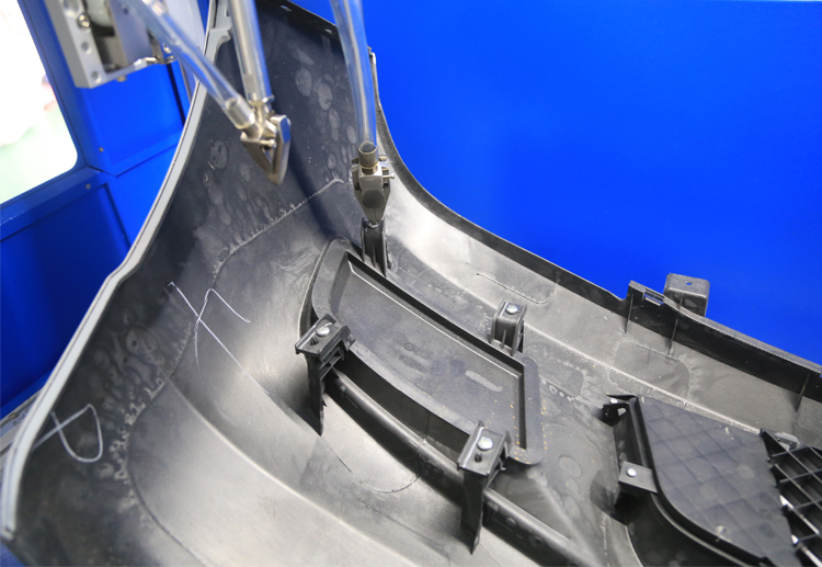 汽车保险杠锁螺丝设备,选用坐标式机械臂锁螺丝的方式。将产品放置在设备上固定后,按下启动键,就可以根据程序设定的位置进行螺丝自动供料,锁附等动作。